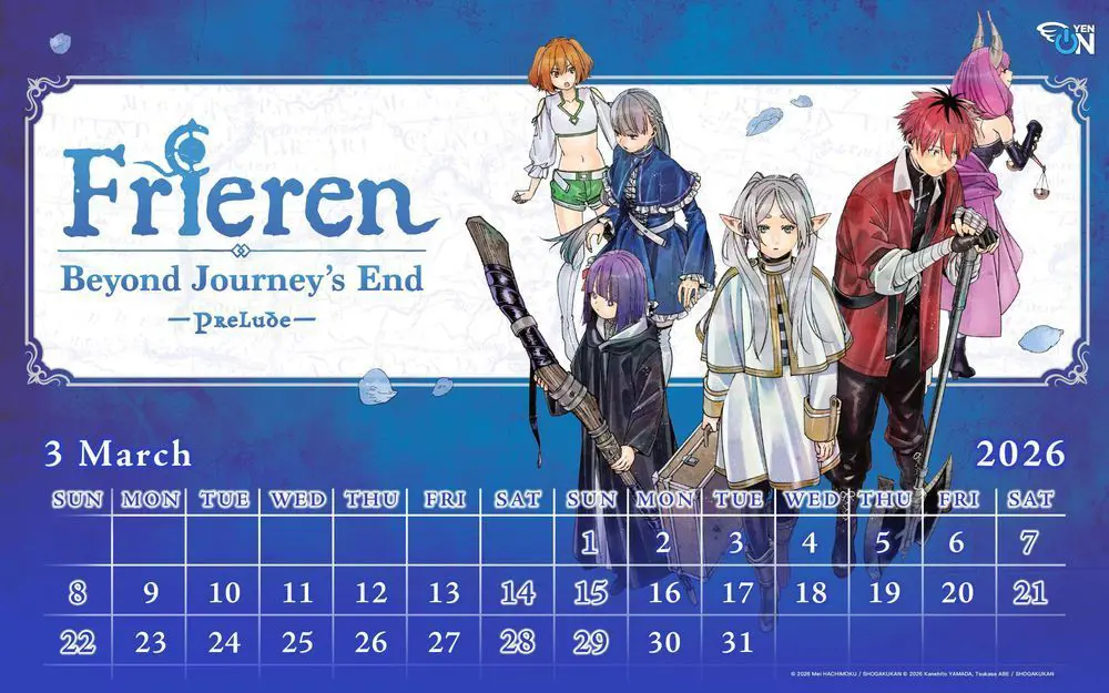 Join Frieren and her friends this March by downloading our calendar wallpapers featuring Frieren: Beyond Journey's End -Prelude- (novel)!